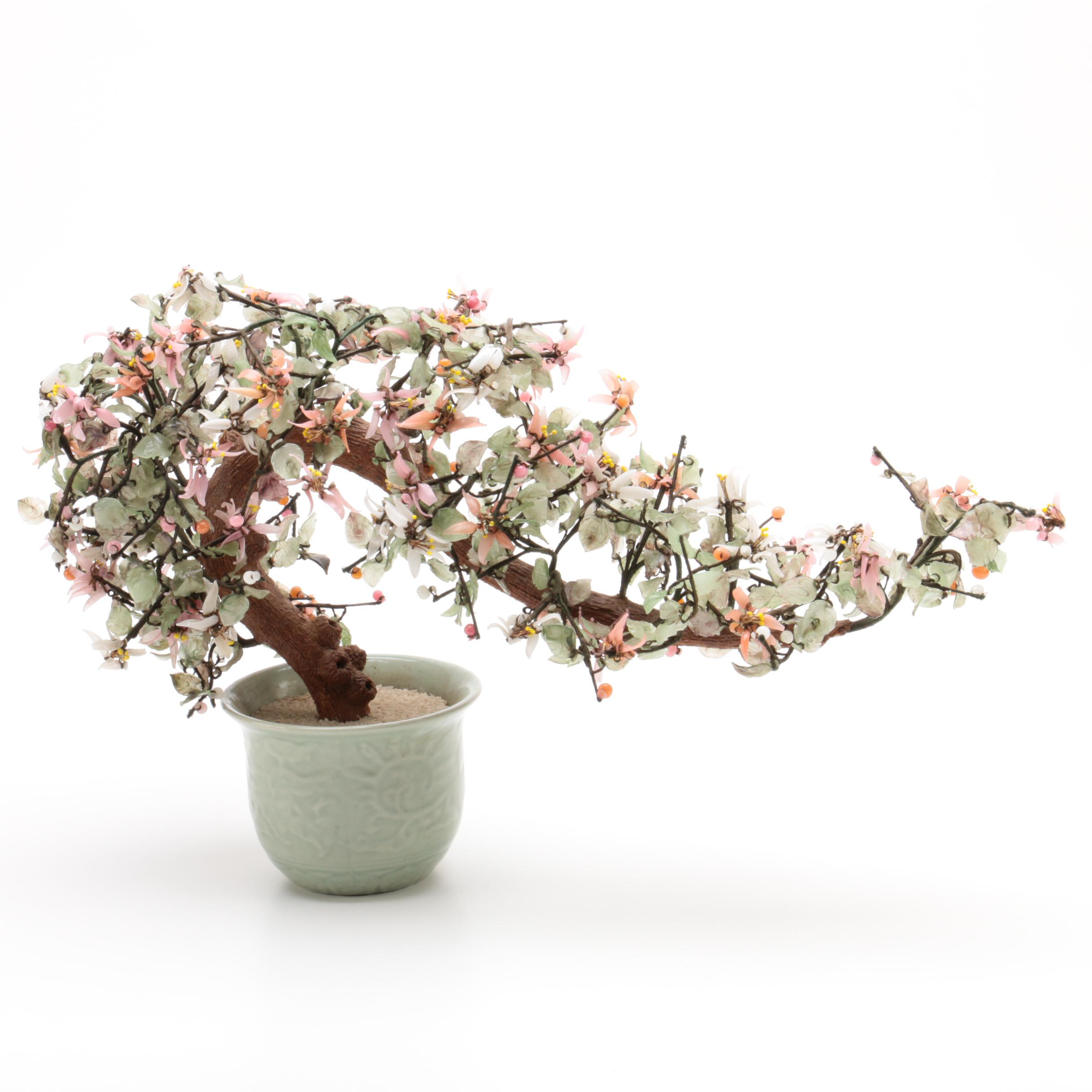 Chinese Glass Faux Bonsai Tree In Celedon Ceramic Pot Ebth