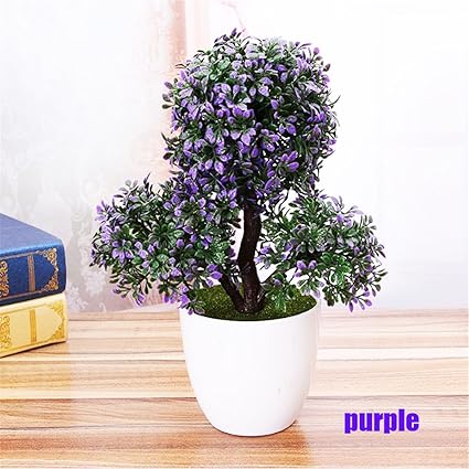 Buy Multicolour Plastic Artificial Bonsai Tree With Purple And Red