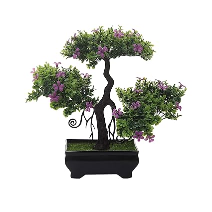 Buy Foliyaj Artificial New 3 Headed Bonsai Tree With Small Purple