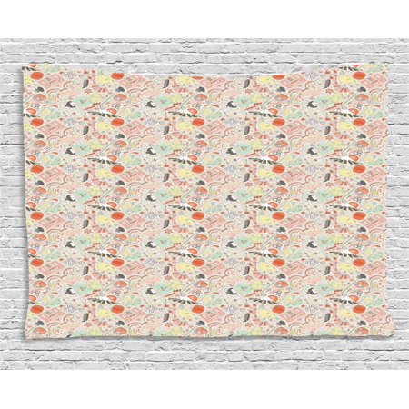 Amazon Com Ambesonne Japanese Area Rug Doodle Koi Fish Sakura